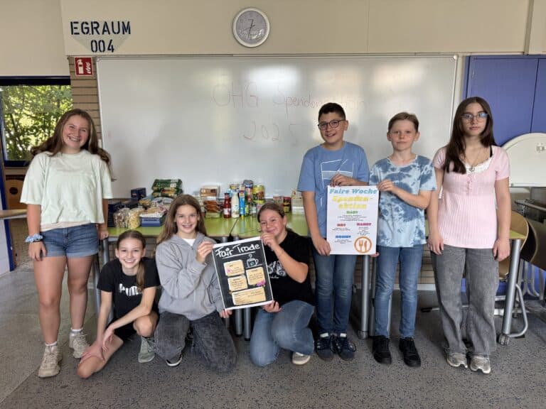 Im Rahmen der Fairen Woche findet an unserer Schule eine Spendenaktion statt! Was wird gesammelt? Wir sammeln verpackte, haltbare Lebensmittel, die nicht gekühlt werden müssen.Wenn möglich, achtet bitte auf fair gehandelte (Fair Trade) Produkte. Wo können die Spenden abgegeben werden? Die Lebensmittelspenden könnt ihr in der Küche (Raum 004) abgeben.