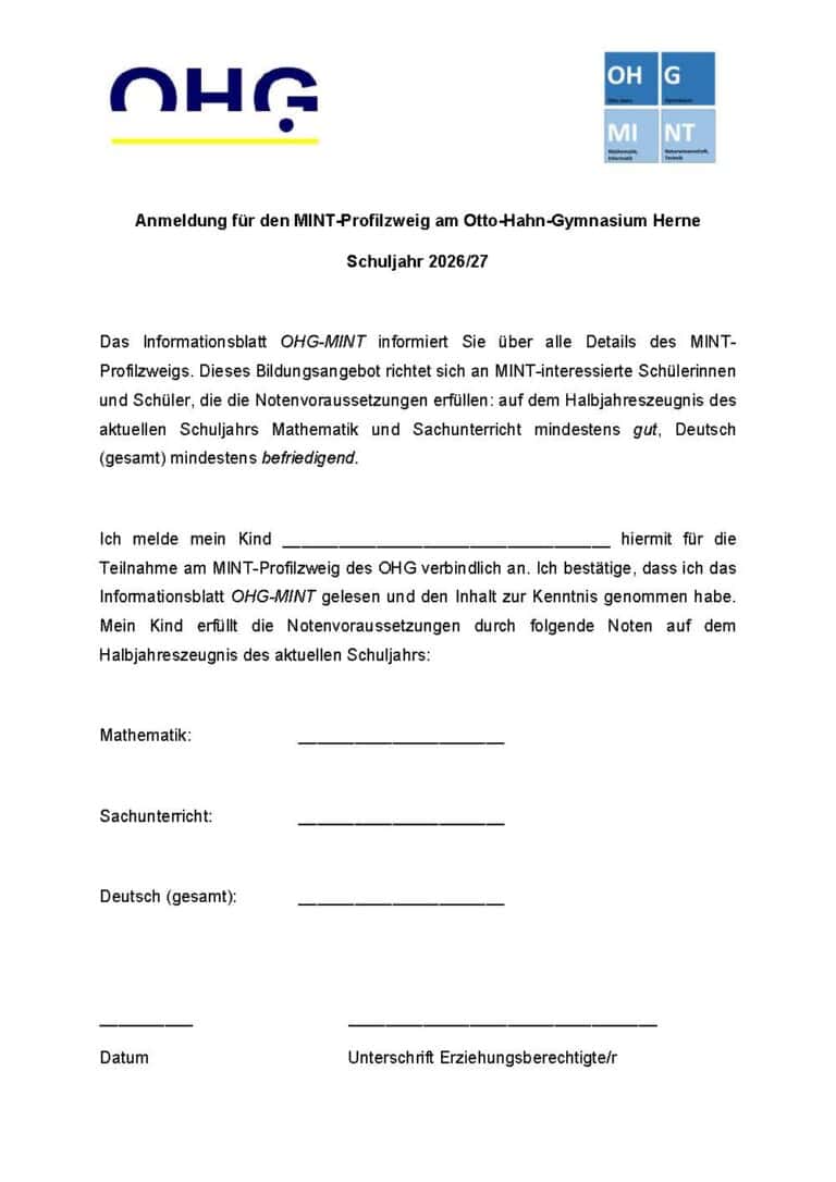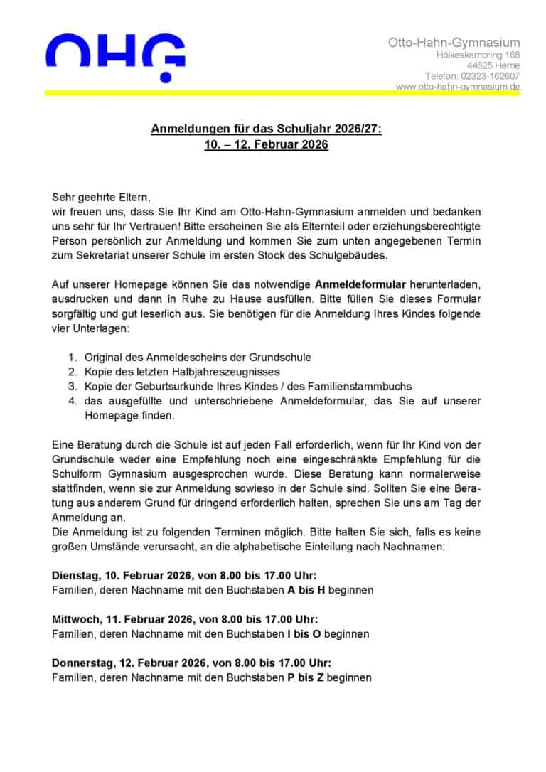 Informationen zum Anmeldeverfahren 2026/27 finden Sie hier ab ca. Januar 2026. Vielen Dank für ihr Interesse!